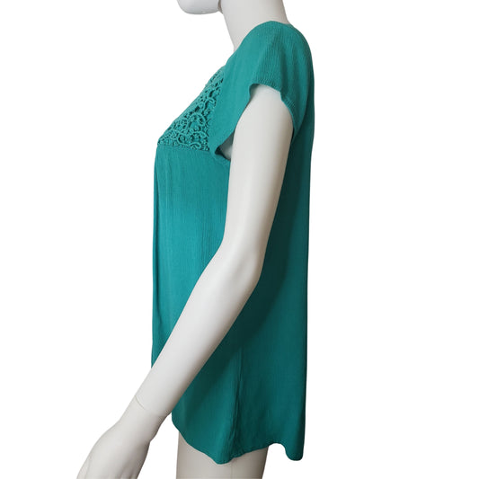 NICOLE MILLER Aqua Short Sleeve Shirt with Crocheted Lace Chest, MediumRegular price $5.99 USDRegular priceUnit price / per