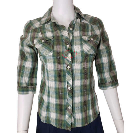 MUDD Green, Gray & White Plaid Button Up Collared Half Sleeve Shirt, MediumRegular price $6.99 USDRegular priceUnit price / per-