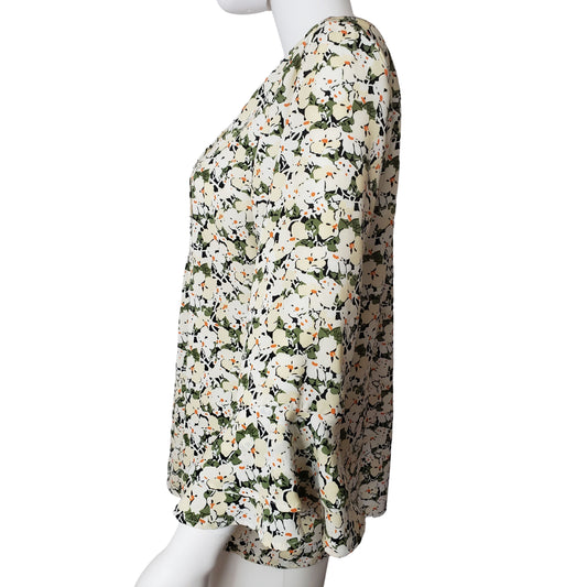 Flounced Sleeve Blouse with Flower Pattern and Pleated Bust, LargeRegular price $9.99 USDRegular priceUnit price / per-
