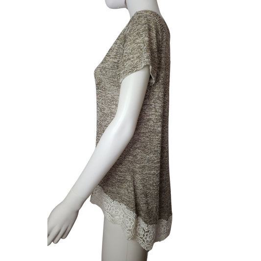 ECOWISH Chic Short Sleeve "T-Shirt" in Beige Colors with Crocheted Hem, LargeRegular price $9.99 USDRegular priceUnit price / per-