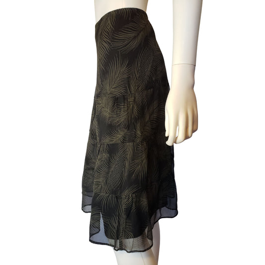 J. CREW Black Below Knee Tiered Skirt with Olive Green Palm Pattern, Size 8Regular price $11.99 USDRegular priceUnit price / per-