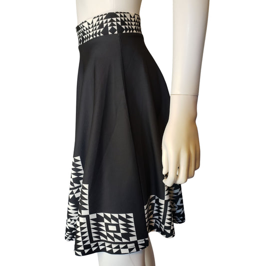 LILY BY FIRMIANA Black Knee Length Circle Skirt with Bold White Geometric Patterns, LargeRegular price $9.99 USDRegular priceUnit price / per-