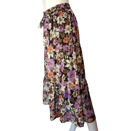 AMISU Shin Length Tiered Skirt with Colorful Floral Pattern and Tie at Waist, Size 4Regular price $12.99 USDRegular priceUnit price / per-