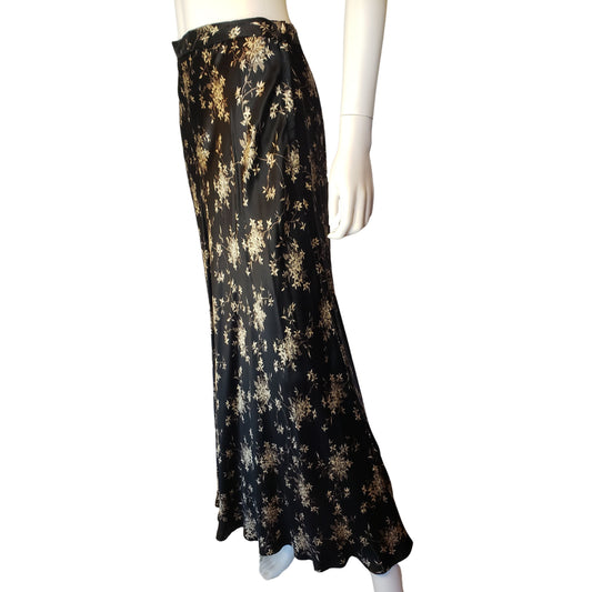 ANN TAYLOR Sleek Black A-Line Ankle Length Skirt with Tan Flowers, Size 10Regular price $20.99 USDRegular priceUnit price / per-