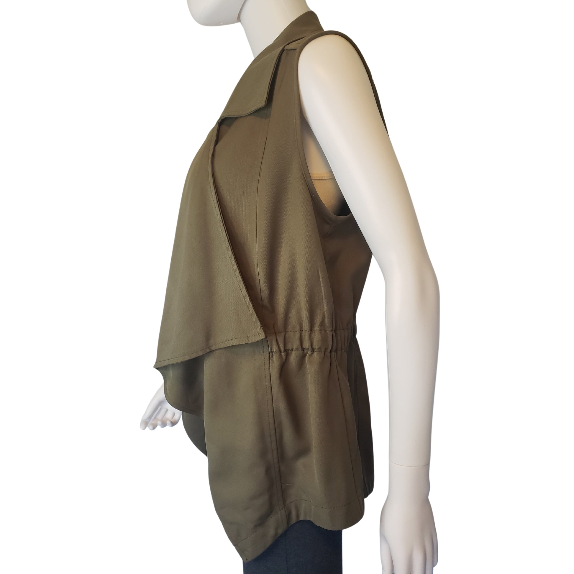 ENTRO Olive Green Sleeveless Cardigan, Small