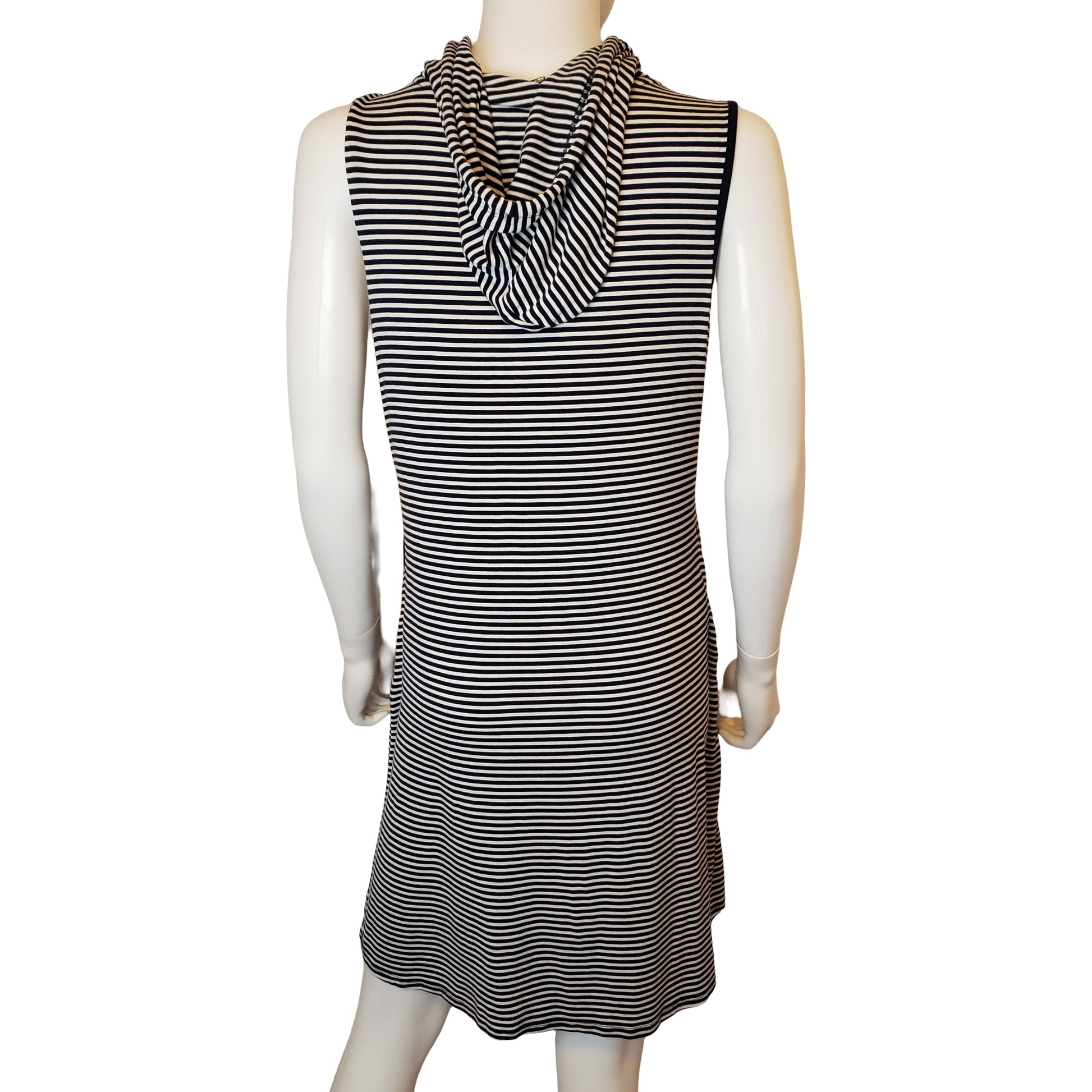 ESPRESSO Navy Striped Tank Dress with Hoodie and Pockets, Above Knee Length, Medium