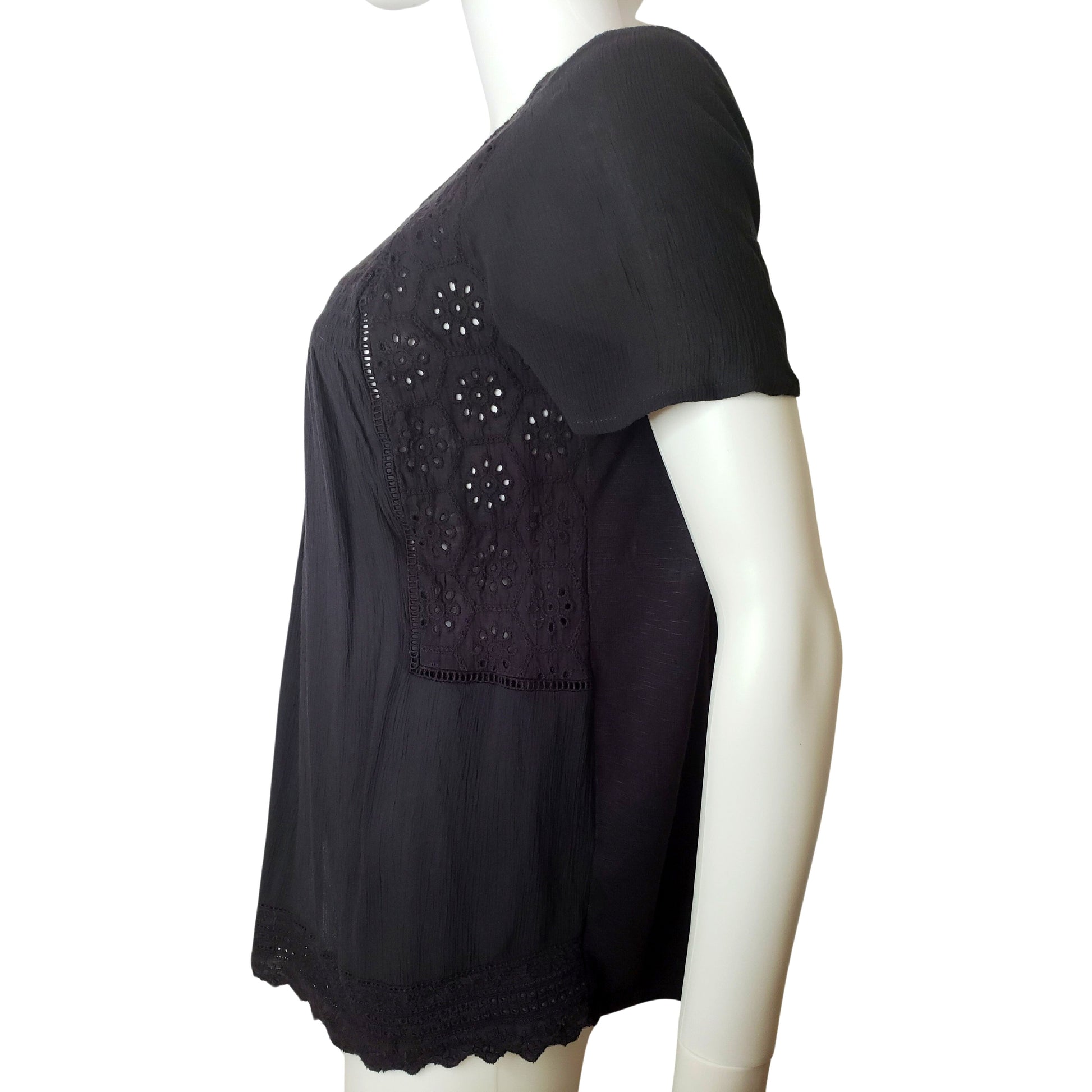 KNOX ROSE Black Beauty Short Sleeve Shirt with Lace Embellishments, Medium
