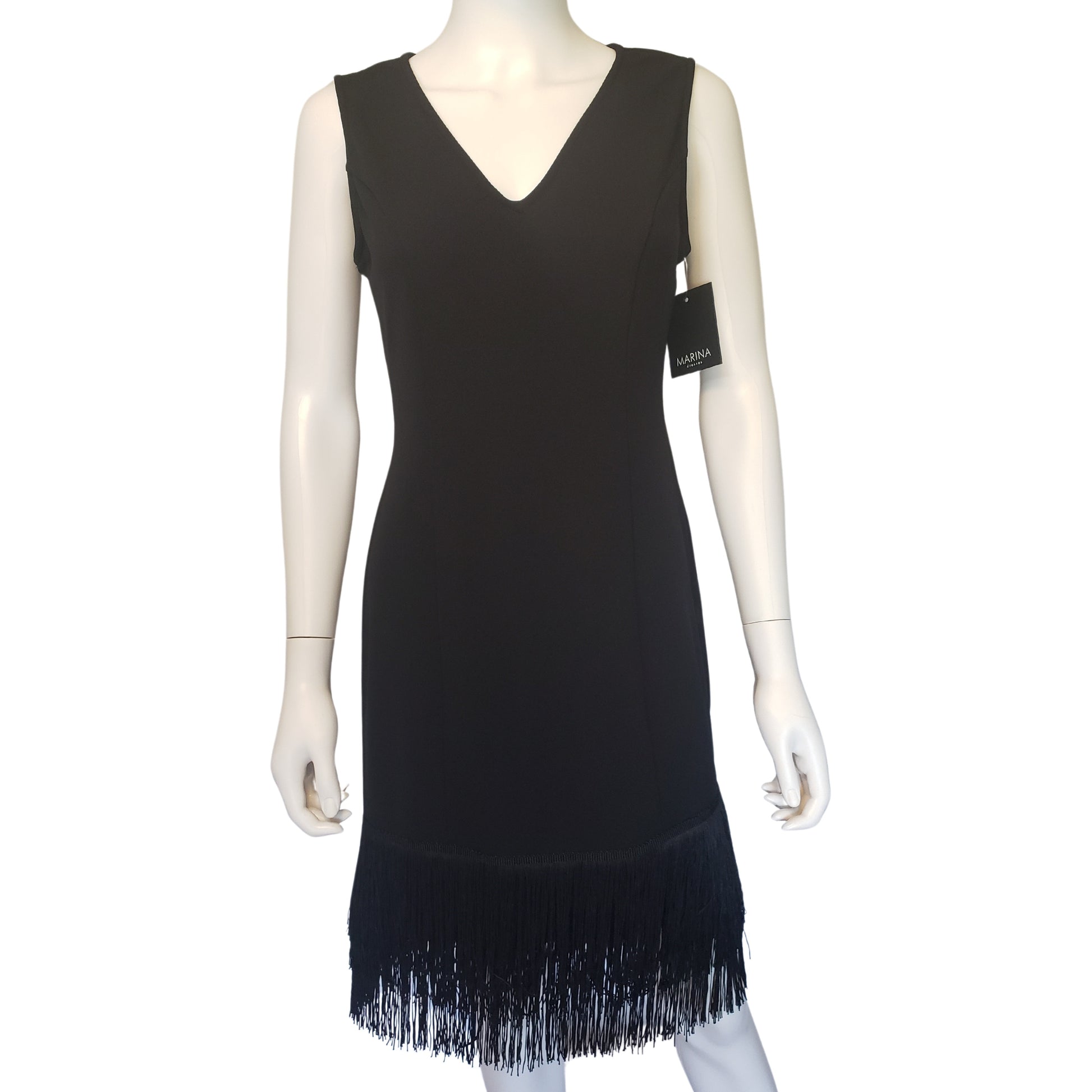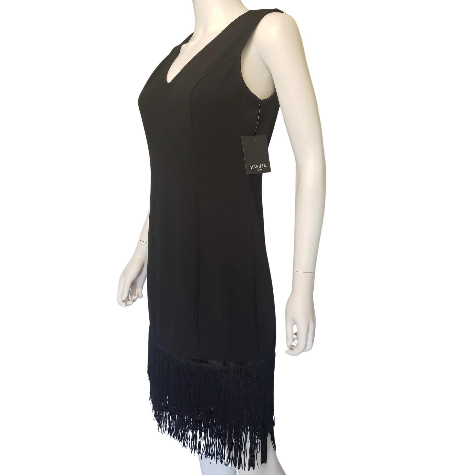 MARINA Black Flapper Sleeveless Dress with V Neck, Small