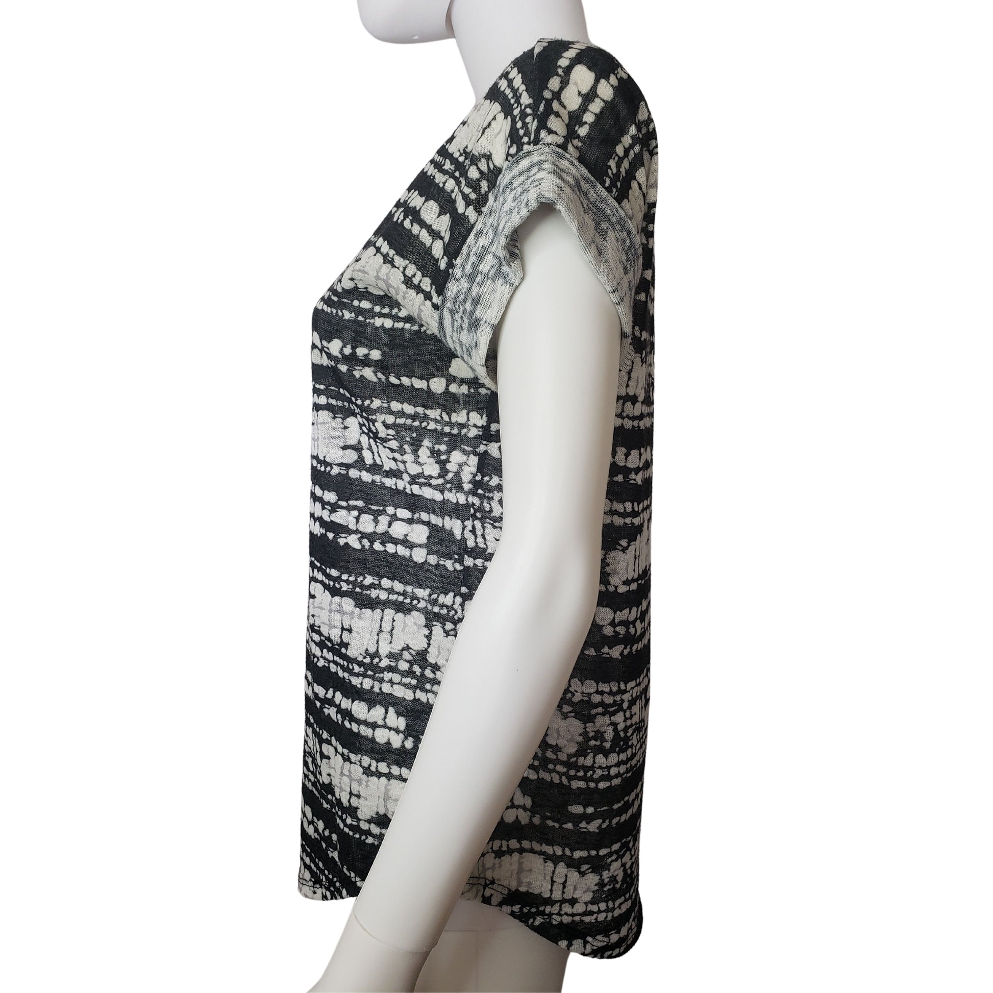 MOSSIMO Black & White Striped Tie-Dye Style Short Sleeve Shirt, Medium