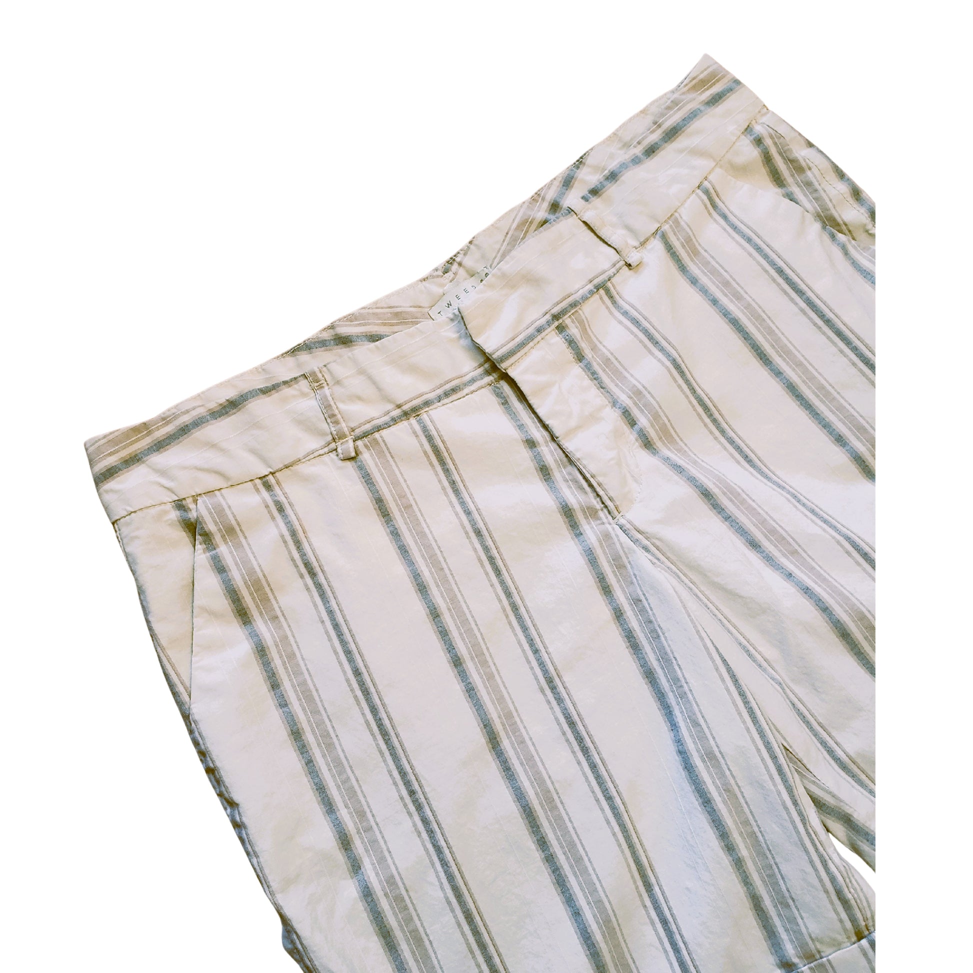 TWEEDS Ivory White Shorts with Light Beige & Blue Stripes, Size 12